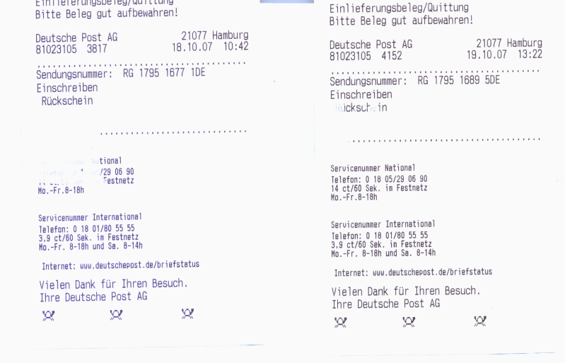 Brief per Einschreiben mit Rückantwort - 2 x !!!!!!!! - sicher